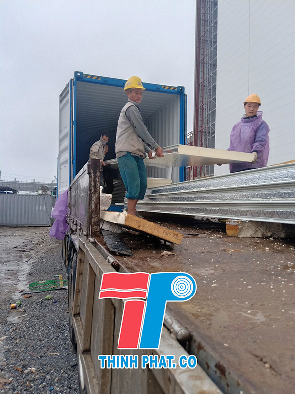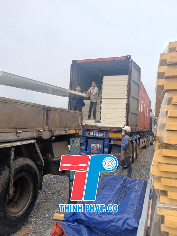 Quá trình giao hàng tấm panel cách nhiệt pu cho chủ đầu tư tại Hưng Yên