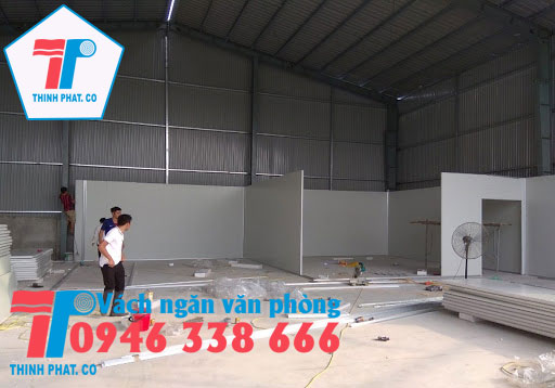 Đang lắp tấm panel eps làm vách ngăn văn phòng