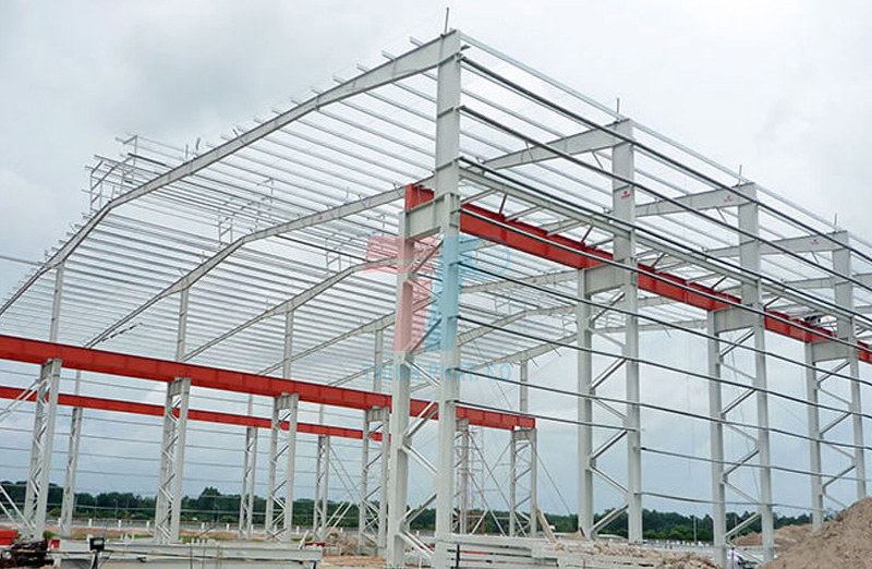 Với bước cột của nhà xưởng lớn, có thể từ 9m – 12m, hệ xà gồ còn được chống bởi các thanh chống bằng thép V gọi là thanh chống xà gồ để tăng khả năng chịu lực.
