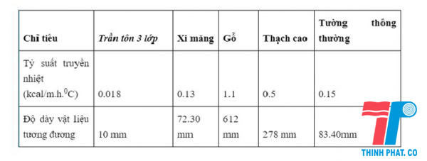 Thông số kỹ thuật tôn trần mát